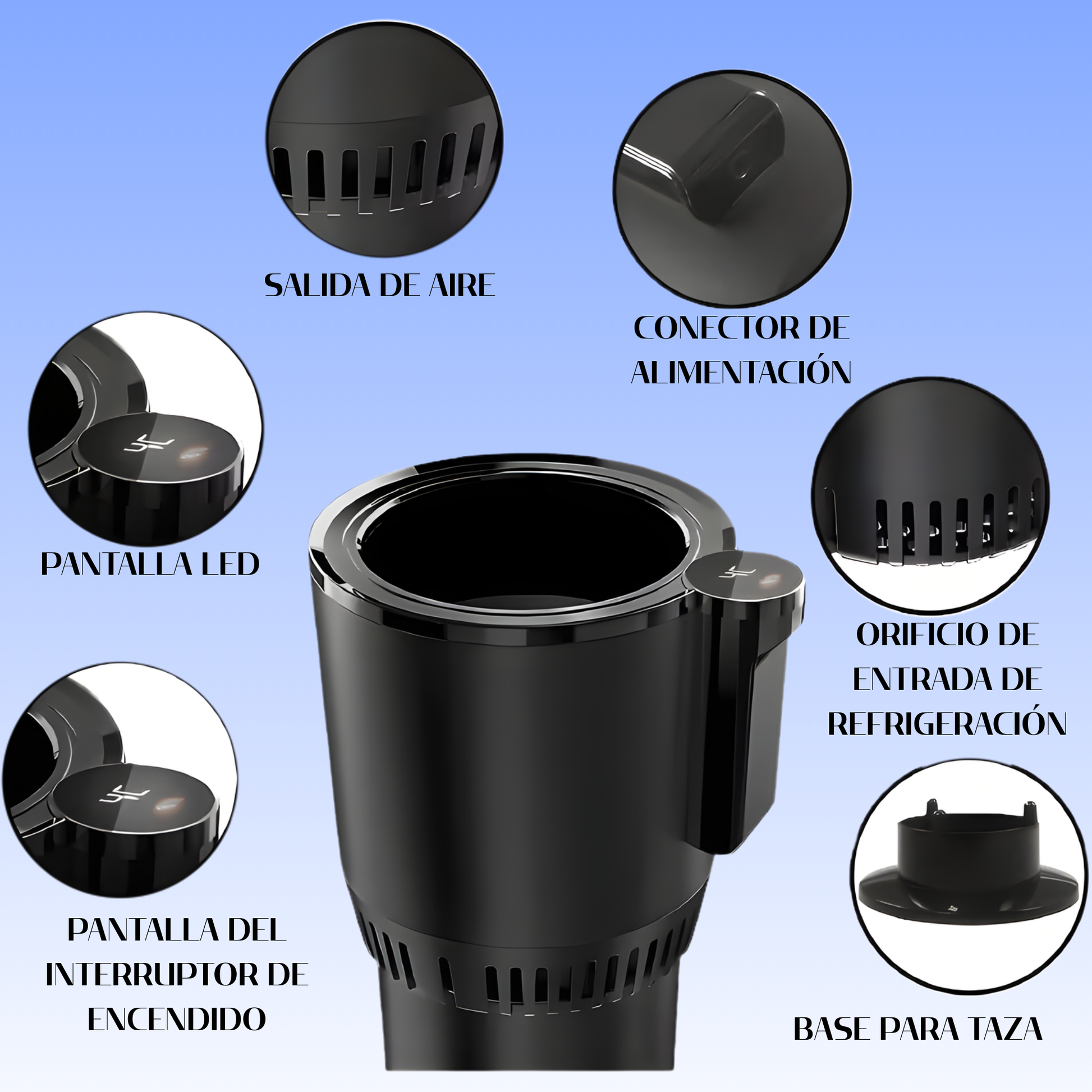 Solo colócalo en el portavasos del coche y conéctalo a la toma de energía. Usa la pantalla LED para seleccionar si deseas calentar o enfriar tu bebida y controlar la temperatura fácilmente.